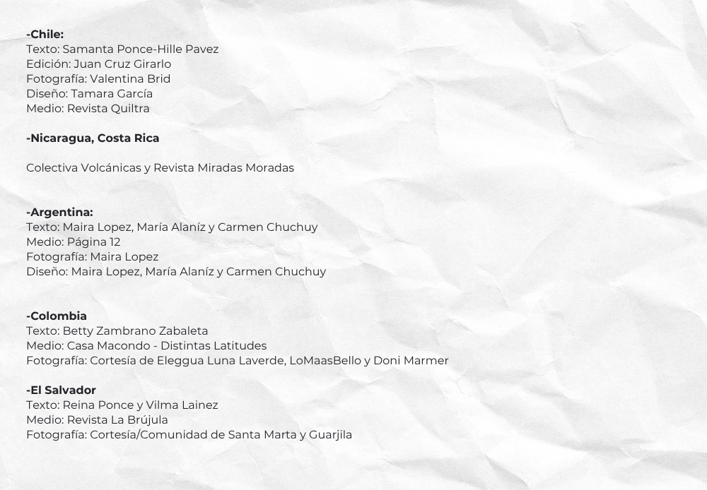Finalmente, hay historias que se presentan como llaves para explorar saberes feministas y comunitarios, esos que se comparten en asambleas, casas familiares, talleres y acompañamientos. En Venezuela, un reportaje nos muestra una historia colectiva de quienes caminan con mujeres en su decisión de abortar. En un país expuesto a todas las miradas y lecturas políticas, las feministas articulan, en la cotidianidad, la soberanía del cuerpo y del territorio desde su propias vivencias. En la ruralidad del Salvador, país que exporta a la región el modelo de seguridad basada en la militarización, mujeres y jóvenes sostienen la organización comunitaria, para responder a la violencia de género y al escaso acceso a educación sexual en las zonas rurales, que muestra los efectos en embarazos de niñas y adolescentes. Asimismo, desde el Chaco Argentino, la voz de mujeres indígenas logra enlazar los impactos del ajuste del gobierno de Milei en el territorio, en la salud, en el ambiente y en la reproducción, y desde esa mirada interseccionada las mujeres proponen alternativas a la desigualdad.